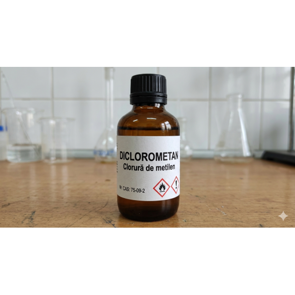 Notă de Siguranță: Deși este neinflamabilă, clorura de metilen este o substanță volatilă ce trebuie utilizată în spații cu ventilație forțată (hotă de laborator). Este clasificată ca fiind suspectată de a provoca cancer (H351), de aceea purtarea echipamentului de protecție (mănuși din materiale rezistente și mască adecvată) este obligatorie. Consultați Fișa cu Date de Securitate înainte de utilizare.